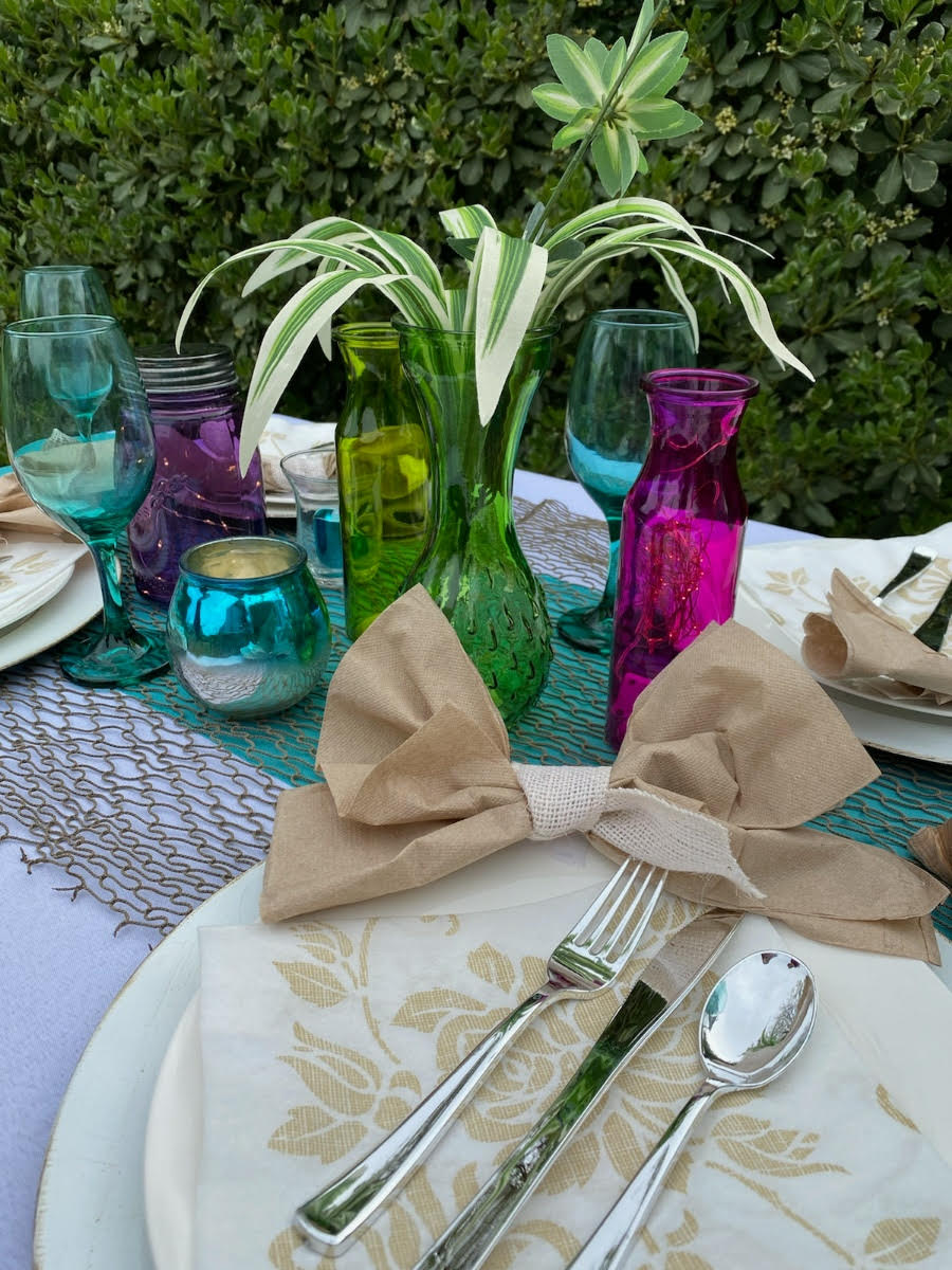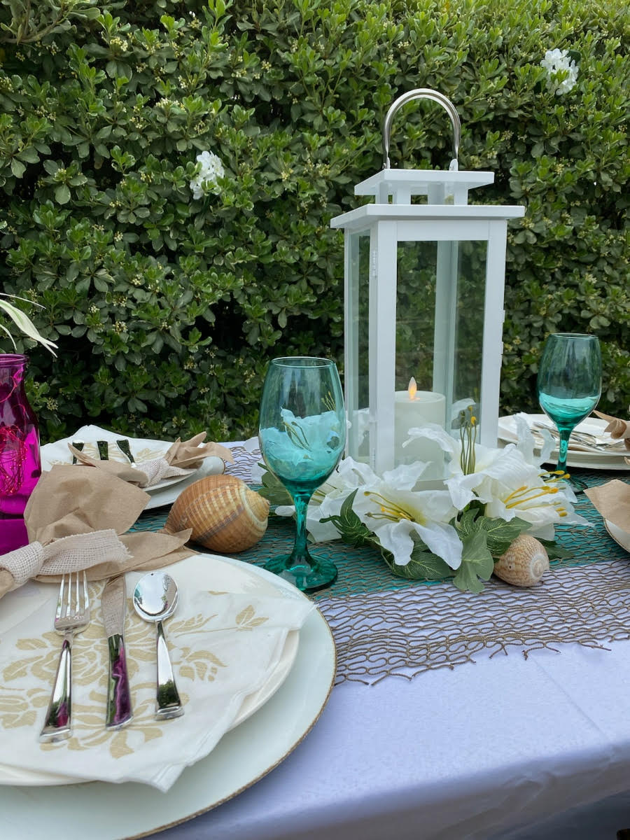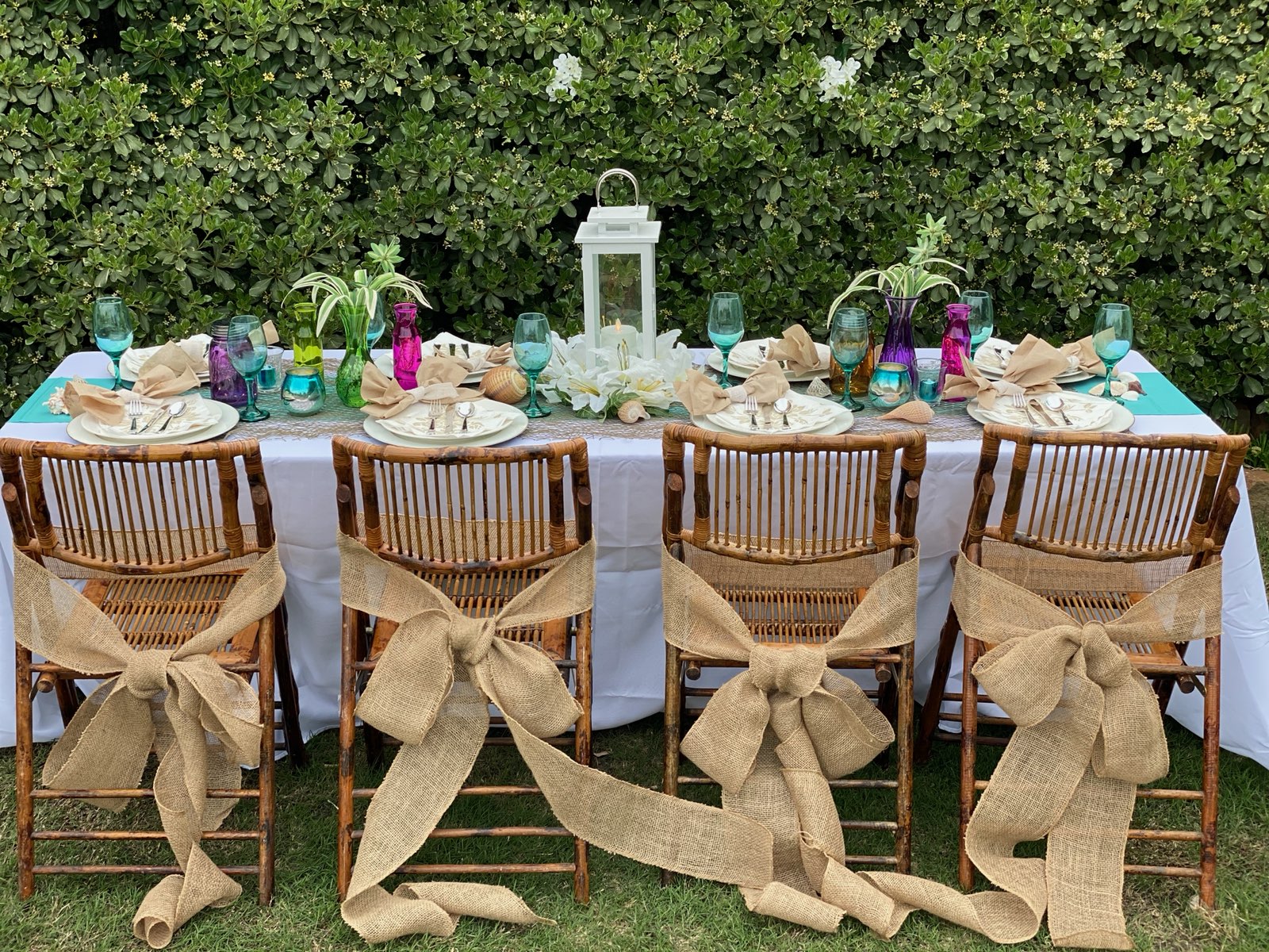 This colorful setting is perfect for the event by the water or in the garden… so much fun!